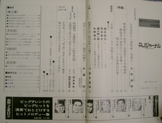▽70年9月号 (映画・放送・音楽の各業界最新情報を扱う総合情報誌「AVジャーナル」へとリニューアルしての第1号)